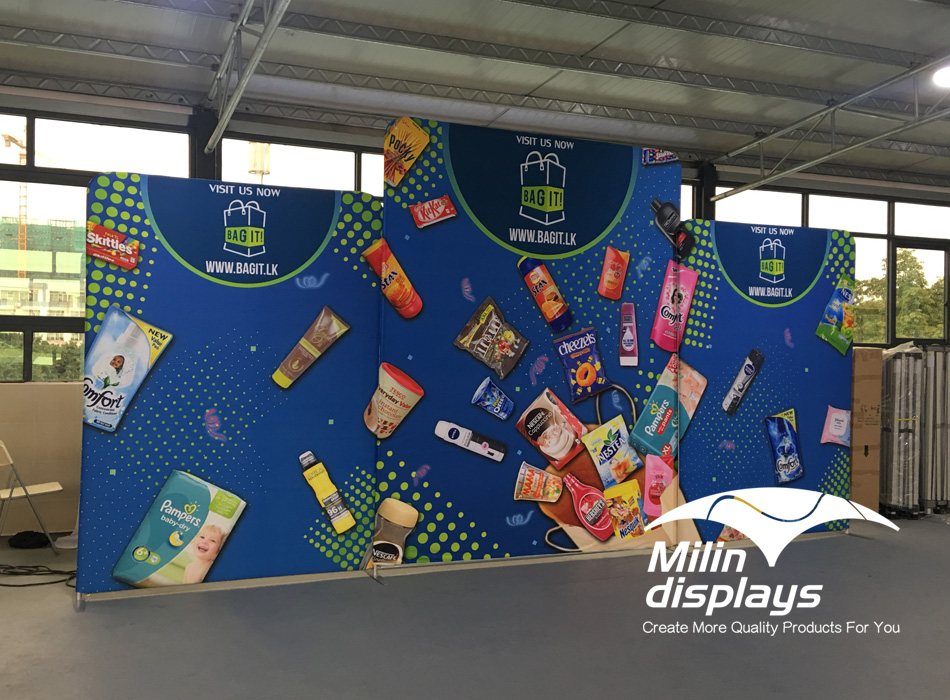 Exhibition booth can be a process of installing the stretch fabric display dye-sublimated graphic on a tension fabric structure varies and depends upon the type of hardware configuration. Many types attach to the front and sides using Velcro, or have rubber tubing that fits into grooves in the hardware. Others overlay the hardware completely (commonly called a pillowcase graphic).