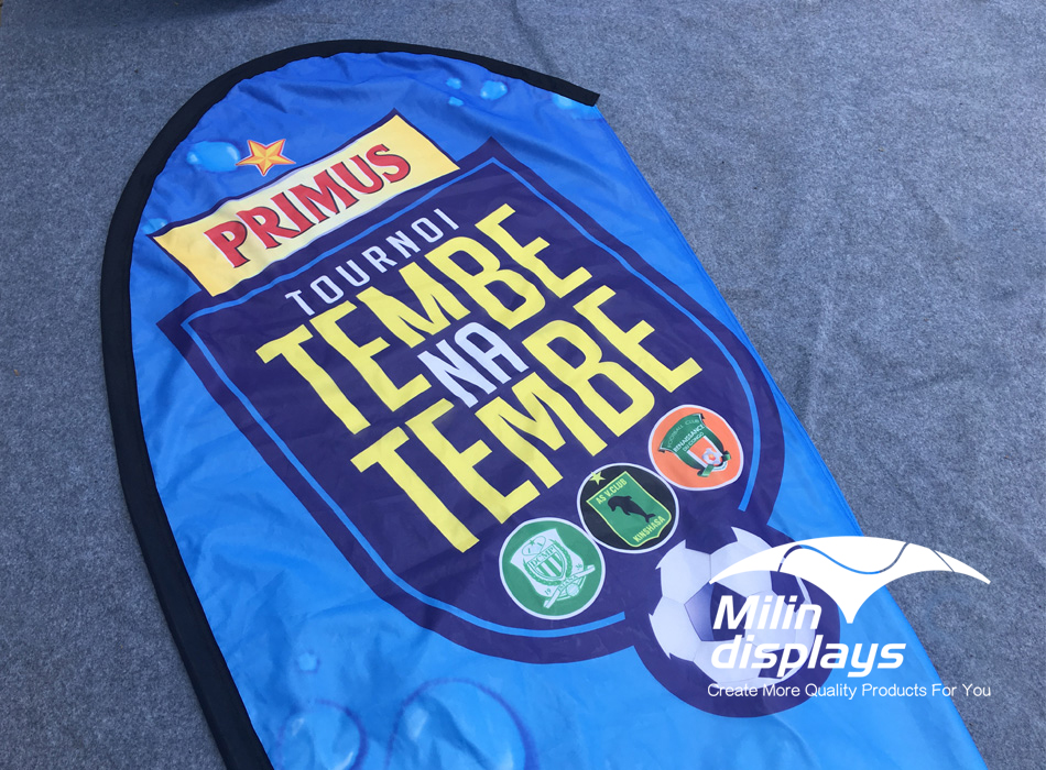 Teardrop Flags are custom printed banners that offer a lot of design space for your advertising message. They can be displayed in or outdoors. Teardrop promo flag flying in front of your store or business attract attention and bring traffic inside! Several message flags lined up create an compelling wall of waving color assuring your marketing message won't be missed.